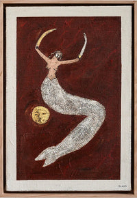 The title Lady Blue is derived from the song by Australian songwriter Emily Wurramara. As she painted this collection, listened to ‘Lady Blue’ repeatedly. It was during the very final stages of gathering her thoughts and ideas behind this collection that she felt compelled to explore the meaning behind Emily's song: “Lady Blue is what my grandmother called the sea. The sea is majestic, is graceful, is mysterious and so alluring. I was thinking Ancient Mermaid kind of feel when I wrote this song.” — Emily Wurramara.