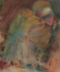 The Circle We Make gathers sixteen paintings that hold the thresholds of birth and early motherhood, rendered on both silk and raw canvas. Each material is chosen for its response to pigment — canvas grounding the mark, silk dispersing it with lightness — mirroring the shifting states of the body and mind in transition. Moving between abstraction and figuration, Jade allows forms to surface through repeated washes of color. Curves recall the arch of a back, a dark pool suggests shadowed hands, while soft edges evoke the way memory and sensation blur through exhaustion, closeness, and surrender.