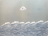 Lance’s continued series of watercolor paintings work with the sky to evolve the series forward while still using the repetitive and meditative elements from the original wave works. The sun's simple shapes add a minimal element to give the waves context, and the clouds have hidden faces in them, creating a dream-like character across the work.