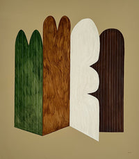 To create Virginie Hucher’s latest works, everything was an inspiration. But an overarching theme across all her works is nature. Because she lives and works in nature, and also travels often for the “Supports Vivants” series, nature, as well as the human body, are present across these works. Across the paintings in this series, each of which takes on a uniquely minimalist, sculptural composition, the concept of Taoism also shines through, which holds that the Tao is the source of everything and the ultimate principle underlying reality and birth.