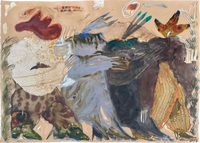 Coffee, ink, watercolor, acrylic, and oil stick on 300lb cold-pressed paper