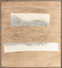 Cement dust, pigments, stitched cotton custom framed in hemlock