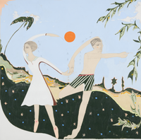 Anatole Heger’s work inhabits a liminal space where self and nature blur. Figures drift through otherworldly landscapes—sometimes dissolving, sometimes resisting subsumption. Heger’s approach to figuration is loose, fluid—an extension of the natural world rather than a departure from it. It is not clear whether they are moving through the space or being absorbed by it, whether they are seekers or subjects of the land’s own inscrutable will. The balance of power is always shifting, and the viewer, like the figures in his paintings, is left suspended in the ambiguity A muted palette heightens the quiet tension, stripping away excess to reveal something mythic yet deeply personal. “The unknown makes beauty immortal,” Heger has said. Recent exhibition include New Image Art, NADA Miami 2024. Recent aquisitions include the Rogath Family collection.