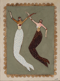 This series of original paintings embarks on an odyssey across the vastness of the ocean, where Brittany Ferns weaves a tapestry of folklore and symbols, tapping into humanity's enduring fascination with the mysteries of the deep. At the heart of her exploration are mermaids, ancient figures that have long represented transformation, serenity, and the raw, uninhibited power of the feminine form. The mermaid, in Ferns' hands, transcends cultural mythology, becoming a vessel for contemplating the depths of the human experience and our collective enchantment with the unknown.