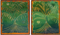 Hannah Carrick’s paintings capture the luminous essence of her Byron Bay home, blending vibrant hues and sweeping forms that evoke the timeless allure of palm trees. For Carrick, the palm tree is more than a symbol of idyllic landscapes; it embodies the joy, escape, and possibility of cherished childhood memories. Her signature style layers bold brushstrokes and intricate textures to transport viewers to a world where peace and wonder converge. These works serve as an invitation to pause, dream, and immerse oneself in the serene beauty of nature and the boundless potential of a moment.