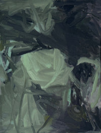 “Deep Waters” envelops us in a mysterious atmosphere that transcends everyday life. The luminous green shape at the center shines like a gemstone in the dark, evoking the sense of our own precious core. Executed in oil paints, the painting boasts rich texture and depth.