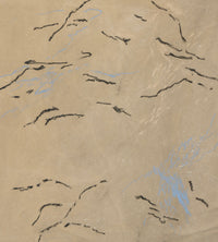 Arias translates this spectral quality into her process, allowing pigments to seep into raw fabric like mineral veins and expand into textured layers recalling salt crusts and volcanic sediments. Broken lines echo fractures of the earth’s crust, while her neutral palette is punctuated by bursts of color, like hidden minerals catching the desert light. Desert Ghosts becomes both landscape and inner journey, meditating on fragility, endurance, and transformation in one of the world’s most extreme terrains.