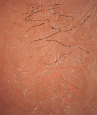 Arias translates this spectral quality into her process, allowing pigments to seep into raw fabric like mineral veins and expand into textured layers recalling salt crusts and volcanic sediments. Broken lines echo fractures of the earth’s crust, while her neutral palette is punctuated by bursts of color, like hidden minerals catching the desert light. Desert Ghosts becomes both landscape and inner journey, meditating on fragility, endurance, and transformation in one of the world’s most extreme terrains.