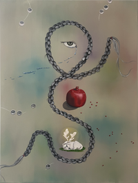 Brianna Lance’s intricate paintings unfold like visual riddles, weaving together themes of rebirth, transformation, delicacy, and aggression through a distinctly Femme Surrealist lens. Her work invites viewers into a dreamlike world where symbols—flowers, candles, ripe fruit, and elaborate braids—hold layered meanings, revealing themselves gradually over time. Each composition is meticulously detailed, offering a rich interplay of softness and intensity, fragility and power.