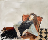With a soft, muted palette and simplified forms, Abs invites interpretation, allowing each composition to serve as a fragment of a larger, unspoken story. The presence of men with cats introduces a subtle subversion of traditional masculinity, offering a quiet reflection on tenderness and introspection. Balancing structure and fluidity, pattern and movement, her paintings evoke a sense of poetic intimacy, where each viewer can find echoes of their own emotions and memories.