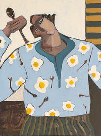 Kate Florence’s large-scale figurative paintings unfold like vignettes from a surreal Western dream. Her subjects—musicians, horses, cowboy-like figures—move through invented narratives rendered in rich earth tones and sweeping, gestural lines. These scenes hum with motion and intimacy, each stroke echoing the immediacy of the hand. Drawing from a personal mythology as much as from the collective imaginary of the American West, Florence constructs spaces where story and symbol collide. Her compositions, both raw and precise, carry the quiet charge of something familiar made strange—an interior frontier where emotion and myth meet in equal measure.