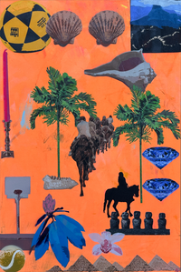 Rooted in cultural and cosmological inquiry, the series fuses philosophical pluralism with cubist fragmentation, collapsing tradition and subversion, history and innovation. Known for her bold, rebellious approach, Beletic blends ancient and modern materials, while oscillating between pop-art exuberance and introspective primitivism. With a distinct blend of intellectual curiosity and artistic daring, Beletic transforms each canvas into a visual dialogue re-contextualizing objects and iconography, exploring a narrative where history and contemporary culture converge.