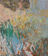 Amy Wright's Roraima series invites viewers into a lush, immersive world where wild nature and memory entwine. Inspired by the otherworldly Roraima Gardens—a sprawling, decades-old dreamscape filled with succulents, cacti, and native orchids—these paintings render a place at once primeval and deeply personal. Wright's brush captures a landscape in flux: part botanical archive, part atmospheric reverie.