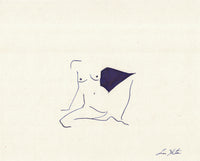 Lauren Skunta’s delicate cobalt ink figure drawings distill movement and emotion into their purest form. With fluid, gestural lines, she captures the essence of the human body—both grounded and ephemeral, familiar yet elusive. The deep cobalt ink lends a quiet intensity, its rich hue echoing the depth of expression within each figure.