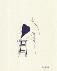 Lauren Skunta’s delicate cobalt ink figure drawings distill movement and emotion into their purest form. With fluid, gestural lines, she captures the essence of the human body—both grounded and ephemeral, familiar yet elusive. The deep cobalt ink lends a quiet intensity, its rich hue echoing the depth of expression within each figure.