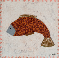 Brittany Ferns’ latest paintings begin with mermaids—sometimes alone, often in pairs—gliding through moonlit waters or resting under tangled trees. These duos suggest kinship, mystery, and quiet rebellion, suspended in dreamlike scenes that blur the lines between land and sea. Cowboys drift into the frame too, conjuring dry horizons and folklore of another kind. Together, these figures animate Ferns’ rich, layered landscapes, where deep greens and dusky tones evoke a wilderness that is both tender and untamed. Her worlds feel pulled from memory and myth, offering a space where stillness, longing, and wonder coexist.