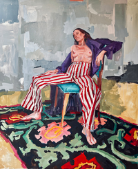 Committed to a body of work that seeks to explore the intimacy of life in the Patagonian mountains, Lola Erhart presents a series of portraits of her friends as an invitation to explore the poetry in everyday life. The weave of the fabric in each painting becomes a central element, indeed a common thread, across the series as she contemplates the loom as a practice that transcends cultures and generations and a valuable object of protection that comes from a deeply meditative practice.