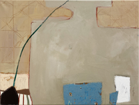 Abs uses acrylic and oil pastels on canvas to create a texture that invites the viewer to explore the depth of the colors and shapes again and again. Her works fill the room with an atmosphere ranging from harmonious to slightly melancholic — entirely at the will of the viewer.