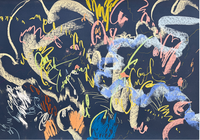 Satsuki Shibuya’s gestural, colorful paintings are a vibrant reflection of her unique artistic process, where movement, emotion, and thought converge. Each piece bursts with energy, the fluid strokes of color weaving together to form an abstract narrative that is both personal and universal. Her bold, expressive use of color conveys a depth of feeling, capturing moments of introspection, joy, and release.