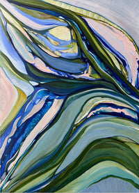 In her work, Astri Stykestad Haukaas works with the tension between distance and proximity to create something that feels familiar, somehow. In this new series, the paintings coalesced as a continuous conversation between the materials and the artist.  The works, inspired by a collection of stones on display in her studio and the memories of places in nature that are always present for her, include water from old paintings to start the new ones.