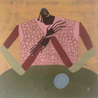 Ibi Meier-Oruitemeka, also known as Studio IMO, is a self-taught painter based in Hastings, UK. Her work explores themes of human connection and the ways individuals influence and shape one another. In 2023, her debut solo exhibition Soft Mirrors sold out on its opening night, marking a significant milestone in her career.