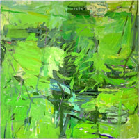 This abstract work is about the feeling of being immersed in the green of a summer garden. We feel the greenery moving in a soft breeze, we look through the leaves into more distant and darker parts of that garden.