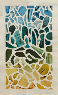 Michael DeSutter’s collages are playful, precise studies in color, form, and the quiet power of what’s left unsaid. Working with hand-cut shapes, DeSutter builds compositions that feel both spontaneous and intentional—balancing vibrant fields of color against expanses of negative space. It’s in these open areas that the work breathes, inviting the viewer to consider how absence shapes presence. Each collage becomes a conversation between solid and void, edge and interruption, where even the quietest moments hold compositional weight. In DeSutter’s hands, abstraction becomes an active practice in restraint, rhythm, and visual clarity.