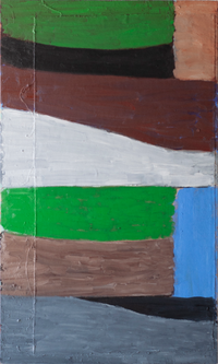 Colt Seager’s block paintings are a direct response to the land and Seager considers them a kind of landscape painting – pulling from the geometry and values of the Midwest prairies and abstracting them into their essential qualities. Emphasizing the painterly attributes of Seager’s mark-making, fields of color interact through gesture in a process-based approach. As a part of his process, Seager lets the painting evolve with spontaneity and intuition to allow the composition to be discovered. Layers of collaged canvas and heavy applications of oil paint facilitate dialogues in the work between figure and ground, color and texture, movement and stillness.