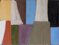 Colt Seager’s block paintings are a direct response to the land and Seager considers them a kind of landscape painting – pulling from the geometry and values of the Midwest prairies and abstracting them into their essential qualities. Emphasizing the painterly attributes of Seager’s mark-making, fields of color interact through gesture in a process-based approach. As a part of his process, Seager lets the painting evolve with spontaneity and intuition to allow the composition to be discovered. Layers of collaged canvas and heavy applications of oil paint facilitate dialogues in the work between figure and ground, color and texture, movement and stillness.