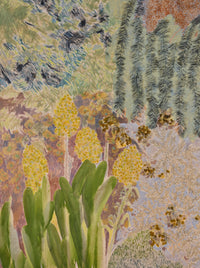 Amy Wright's Roraima series invites viewers into a lush, immersive world where wild nature and memory entwine. Inspired by the otherworldly Roraima Gardens—a sprawling, decades-old dreamscape filled with succulents, cacti, and native orchids—these paintings render a place at once primeval and deeply personal. Wright's brush captures a landscape in flux: part botanical archive, part atmospheric reverie.