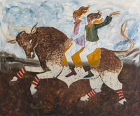 Kate Florence’s latest collection is a celebration of togetherness, honoring the intimate rituals and timeless bonds that connect people to one another and to animals. Across these paintings, scenes of shared meals, moments of laughter, and the quiet companionship of animals unfold with tenderness and warmth. Grounded in storytelling, Florence’s paintings emphasize the beauty of connection in its most honest form. Figures are expressive, gestures intentional, and every scene carries the weight of lived experience.