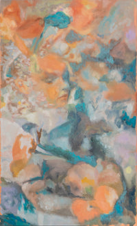 Ross’ palette, dominated by ethereal teals and greens, evokes nostalgia and otherworldliness. These recurring hues, reminiscent of oxidized patina on aged architecture, mirror cinema’s ability to transcend time. Through a process of layering, blending, and softening backgrounds against more insistent brushstrokes, Ross destabilizes familiar imagery, allowing ghostly echoes of the film to surface. Figures such as Dorothy may appear blurred, partially erased, or obscured, underscoring themes of fragility, repetition, and emotional dissociation. The result is a body of work that dissolves the boundaries between past and present, inviting viewers into a collective meditation on grief, memory, and healing.