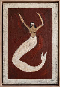 The title Lady Blue is derived from the song by Australian songwriter Emily Wurramara. As she painted this collection, listened to ‘Lady Blue’ repeatedly. It was during the very final stages of gathering her thoughts and ideas behind this collection that she felt compelled to explore the meaning behind Emily's song: “Lady Blue is what my grandmother called the sea. The sea is majestic, is graceful, is mysterious and so alluring. I was thinking Ancient Mermaid kind of feel when I wrote this song.” — Emily Wurramara.