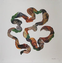 This new series from Michael DeSutter is a visualization of the passage of time. Each piece is named after an album that holds implicit memories for the artist, coding the work to a particular point in his life most recognized to him now by the songs of these albums. While working on “Implicits” in his studio, an old album came on and DeSutter was immediately transported to an earlier time in life — vague memories and ineffable feelings crept in. As he continued to work on this collage series, he began listening to other albums from his past.