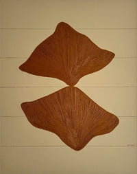 To create Virginie Hucher’s latest works, everything was an inspiration. But an overarching theme across all her works is nature. Because she lives and works in nature, and also travels often for the “Supports Vivants” series, nature, as well as the human body, are present across these works. Across the paintings in this series, each of which takes on a uniquely minimalist, sculptural composition, the concept of Taoism also shines through, which holds that the Tao is the source of everything and the ultimate principle underlying reality and birth.
