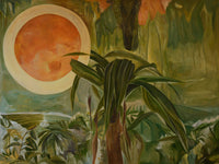 “Mata Virgem” is the title of a song by Raul Seixas. In these paintings, I bring to the canvas the memory of the nature that has always enveloped me in my homeland and the peaceful feeling that it brings. The sun is always present, as a symbol of the divine. It’s a window to my tropical paradise, my piece of home shared with the world.