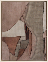 Chanee Vijay's abstract textile collages draw on her regard for local landforms, faults, cycles of growth and decay with materials, and techniques she gleaned across a decade of textile surface design and pillow production. Starting with her European hemp offcuts, Chanee plays with tonality, often over-dyeing and painting each piece to bring mood and enhanced character to the fabric. Her attentiveness to the interactions among forms reinforces the arrangement’s imperfect lines. The final composition is realized by pasting, then sculpting the hemp together to create movement and texture with raw exposed seams.