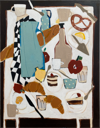 Patchwork Thoughts explores the deep connections between everyday scenes and the structured play of patterns, particularly the checkerboard motif. Each work draws viewers into seemingly familiar, domestic environments where people, animals, and objects subtly intertwine. The recurring checkerboard pattern acts as a symbol of the balance between order and chaos, routine and chance in daily life.