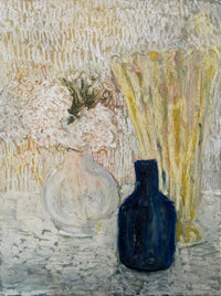 Phoebe Stone, based in Sydney, Australia, is an artist whose practice centers on the expressive potential of oil pastels. Stone's work explores the beauty and balance found in the interplay of composition, color, pattern, and texture, often drawing inspiration from the quiet poetry of domestic life. Scenes of everyday objects—food, flowers, and household forms—are rendered with a sense of immediacy and vitality, reflecting Stone’s intuitive approach and her deep engagement with process.