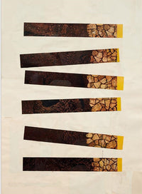This is a continuation of Michael DeSutter’s Counting Bars series. Created from vintage Fortune magazines the artist inherited from his grandfather, the work references growth in multiple ways. While DeSutter thought there was nothing left to explore with the series, each time he sat with the materials it felt like a conversation with his grandfather, driving him to see things in a new way. The artist simply was not ready for this conversation to be over just yet. In the artists own words: