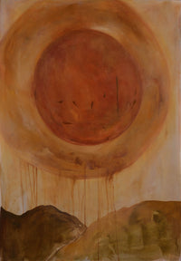 Acrylic and oil on canvas hung on brass bar