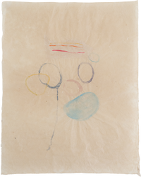 Drawing on artist-made paper fragment with watercolor on artist-made paper (sun, air, water, abaca fiber)