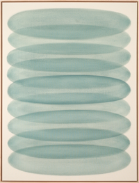 The current series by Ryan Alexandre Snow, titled Shapes Gradient, explores the realms of visual space, time, and balance through monochromatic shapes of color on natural canvas. With a seamless blend of abstract minimalism and organic textures, each painting invites viewers on a reflective journey of inner peace. Within this meditative series, Ryan masterfully orchestrates the interplay of minimal repeating elements, balancing form and layering, color and gradient. Through his intuitive brushstrokes, he captures the fluidity of motion, creating a suspended sense of time where past, present, and future converge. In making, there was an environmental focus on source materials including making his own paint from earth pigments collected near and far including foraged ochres from the mountains of Ojai to traditional indigos from Japan.