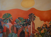 “Pindorama”, meaning “land of the palm trees,” is the name the indigenous Tupi-Guarani people gave to their homeland—centuries before it became known as Brazil. Miranda’s works honor this deep history, drawing from the verses of Adélia Prado, the melodies of Tom Jobim, and the spirit of Brazil’s cultural tapestry. Each painting is an emotional landscape—bold, rhythmic, and alive—where orange becomes the sun’s embrace, light becomes movement, and every brushstroke echoes with the cadence of a distant song.