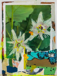 Recently featured in Architectural Digest, Michael Harnish begins his painting process by first making paper collages, utilizing imagery pulled from various sources including botanical books, fashion magazines, and commercial signage in his native Southern California. These collages then become the inspiration for his paintings—sometimes accurate depictions of the original collage, other times improvisation takes the lead once the brush hits the canvas. Flora takes a central role in Harnish’s works, with local cactus and agave played off tropical plants and grocery store orchids—combining a high/low aesthetic in an exhilarating synthesis. Harnish has exhibited widely through out Southern California and in London.