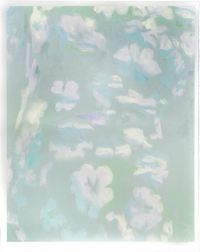 Ross’ palette, dominated by ethereal teals and greens, evokes nostalgia and otherworldliness. These recurring hues, reminiscent of oxidized patina on aged architecture, mirror cinema’s ability to transcend time. Through a process of layering, blending, and softening backgrounds against more insistent brushstrokes, Ross destabilizes familiar imagery, allowing ghostly echoes of the film to surface. Figures such as Dorothy may appear blurred, partially erased, or obscured, underscoring themes of fragility, repetition, and emotional dissociation. The result is a body of work that dissolves the boundaries between past and present, inviting viewers into a collective meditation on grief, memory, and healing.