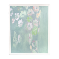 Ross’ palette, dominated by ethereal teals and greens, evokes nostalgia and otherworldliness. These recurring hues, reminiscent of oxidized patina on aged architecture, mirror cinema’s ability to transcend time. Through a process of layering, blending, and softening backgrounds against more insistent brushstrokes, Ross destabilizes familiar imagery, allowing ghostly echoes of the film to surface. Figures such as Dorothy may appear blurred, partially erased, or obscured, underscoring themes of fragility, repetition, and emotional dissociation. The result is a body of work that dissolves the boundaries between past and present, inviting viewers into a collective meditation on grief, memory, and healing.
