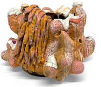 Vince Palacios' work has been featured in Architectural Digest and is included in several prominent museum collections including The Long Beach Museum of Art, The American Museum of Ceramic Art in Pomona, The Mint Museum of Craft and Design (North Carolina), and JINRO Cultural Foundation (South Korea). He has spent decades honing and developing a unique approach to the use of glass and ceramic materials as a means of crafting intricate narratives addressing geological process, pyroclastic interaction, and heat/chemical reactions.
