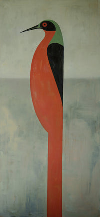 “These paintings embody my ongoing dialogue between leaving and staying, reflecting my desire to do both. They represent an inner duality: wanting to land, wanting to fly.