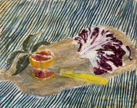 Sydney-based artist, Phoebe Stone, works primarily in oil pastel, using the medium’s immediacy to explore the quiet beauty found in everyday arrangements of color, pattern, and form. Her works capture scenes of domestic life—tablescapes, food, and familiar objects—rendered with a sense of urgency and delight.